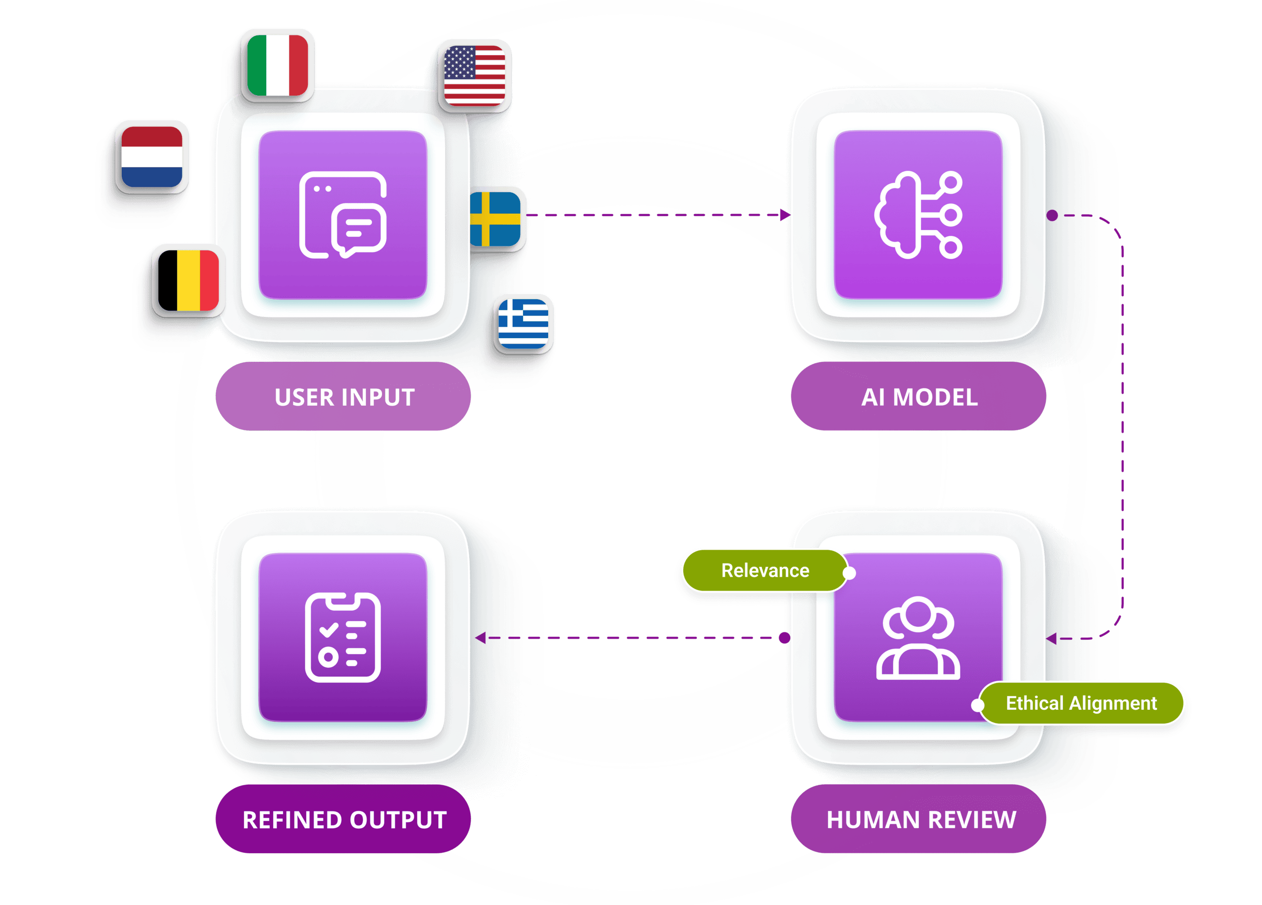 Fine-tune model responses with iterative, human-guided training to ensure relevance and ethical alignment.