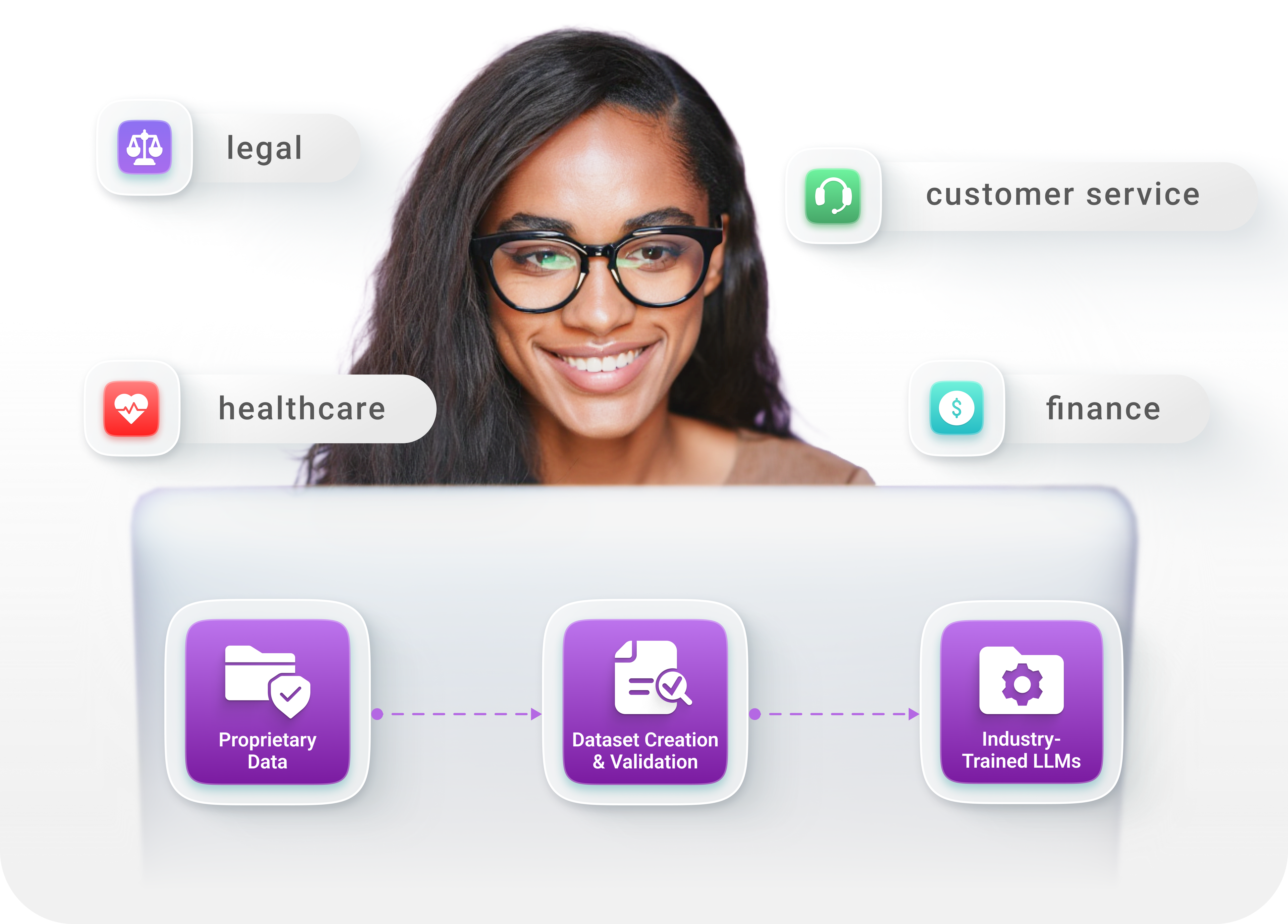 Train LLMs on proprietary datasets to address industry-specific needs across finance, healthcare, legal, and customer service sectors.
