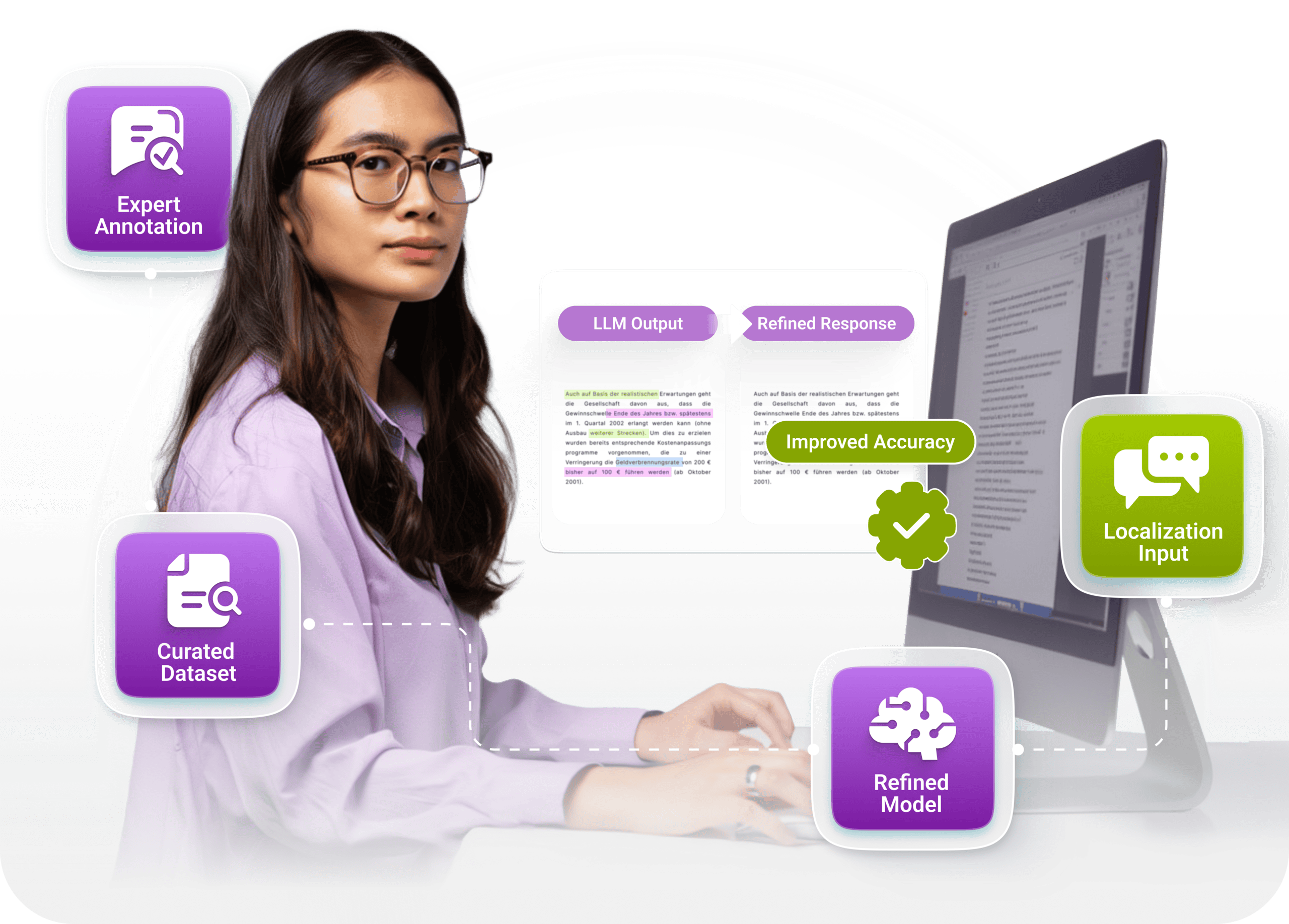 Achieve end-to-end LLM excellence- from data curation and expert annotation to fine-tuning and validation. Our data scientists and domain experts in 85+ languages partner with you for accurate, secure models ready for real-world business.