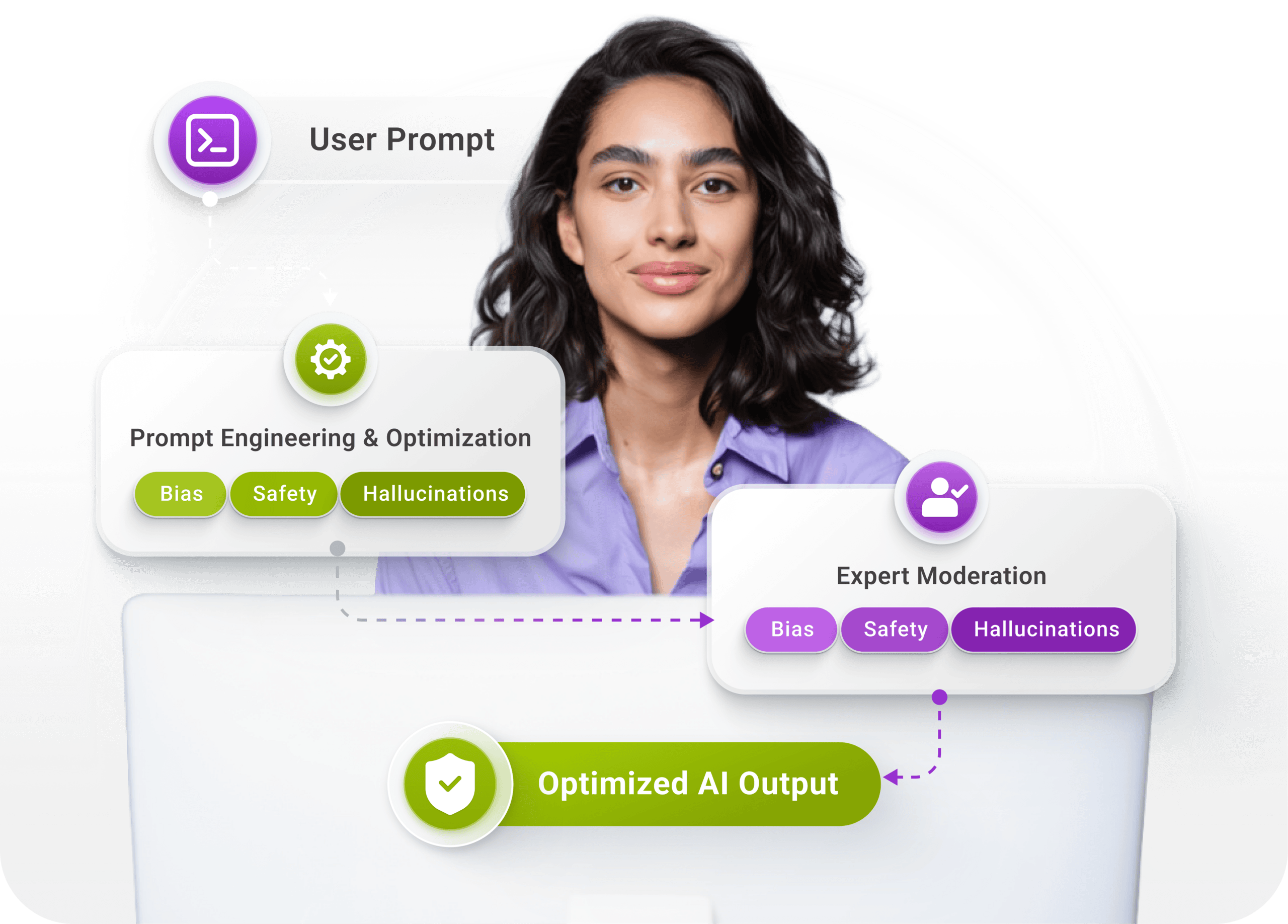 Systematically auditing model outputs to detect bias and hallucinations, improving fairness, accuracy, and trustworthiness.